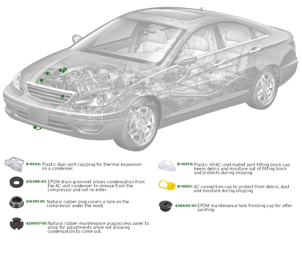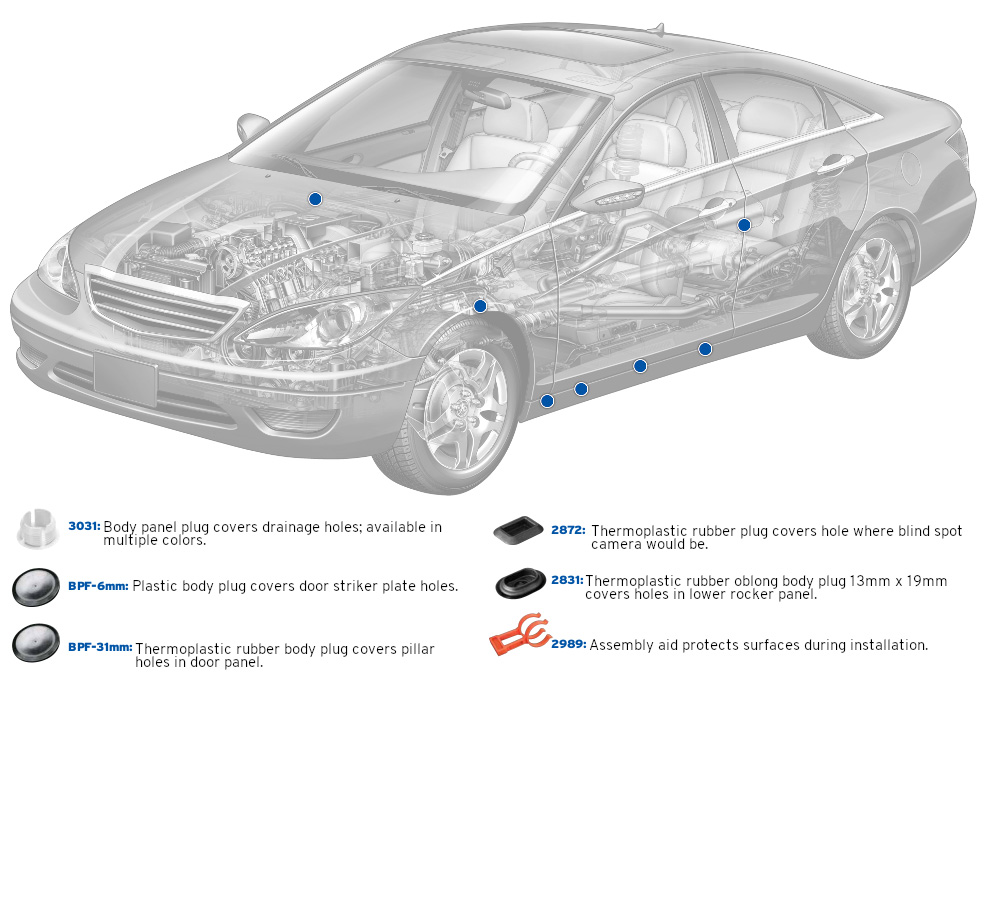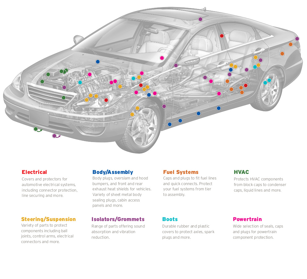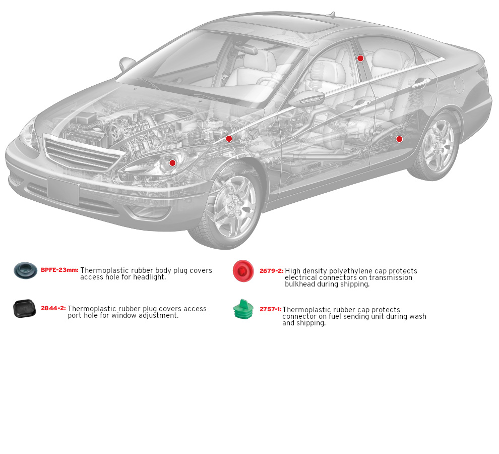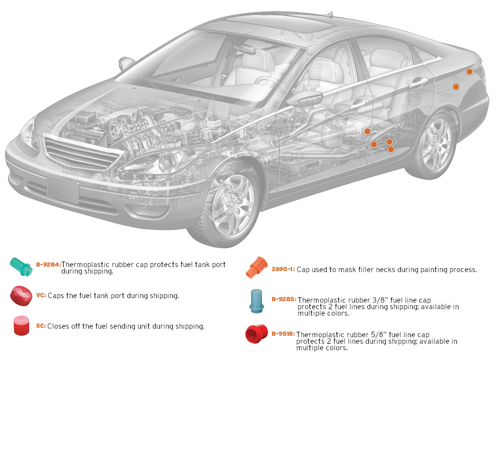Caplugs has tooled a wide range of caps, plugs, finishing parts and masking devices commonly used in the automotive industry. Our catalog parts are in stock and available to ship today so you can get the parts you need when you need them. All standard parts are also available to sample free of charge so you can test them in your application before placing a full order.