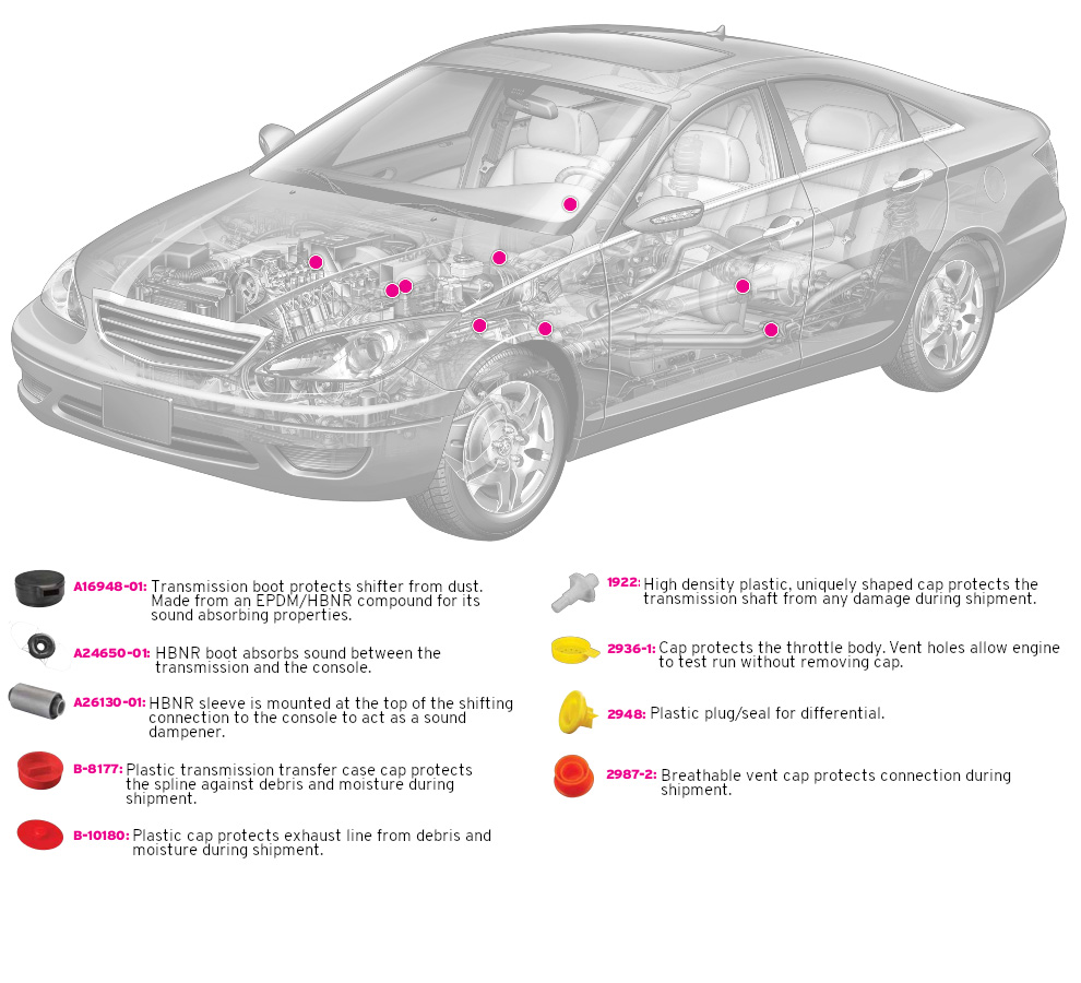 For over seven decades, Caplugs has been the trusted partner for vehicle manufacturers, with thousands of catalog parts and custom automotive part designs for product protection and finishing.